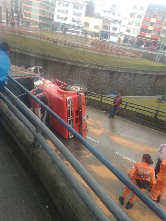 Camión cargado de café se volcó cerca de la Plaza Alfonso López