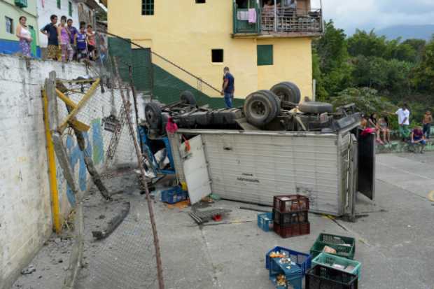 Ayer el camión en el que Marcelo López y su tío repartían mercancía en una esquina del barrio Obreros de Salamina rodó por una calle y cayó a la cancha.