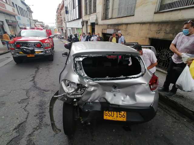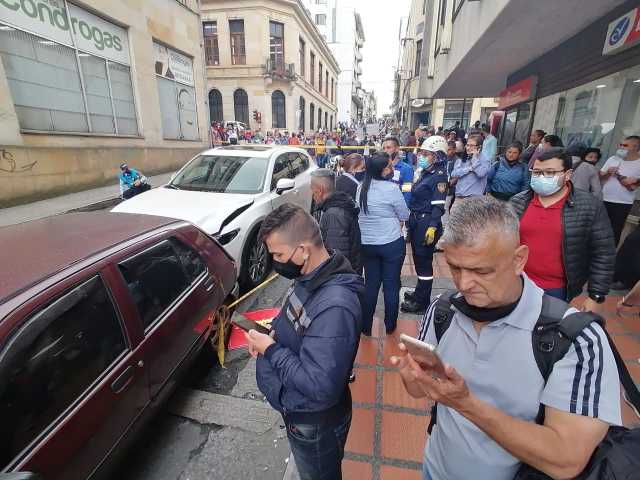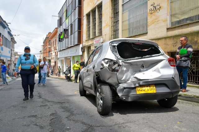 A la 1:00 de la tarde de este jueves se registró un accidente de tránsito en el Centro de Manizales, en la calle 20 entre carreras 24 y 21, en donde una camioneta blanca marca Mazda que estaba parqueada y se desengranó y chocó contra tres carros de venta informal. Seguidamente, impactó dos vehículos, informó la Alcaldía de Manizales.