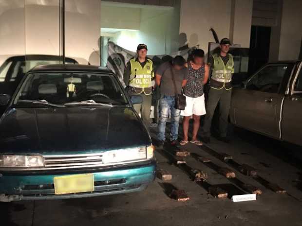 Unidades adscritas a la Seccional de Tránsito y Transporte de la Policía de Caldas capturaron anoche a dos hombres que se movilizaban en la vía Manizales-Medellín con 19 kilos de marihuana.