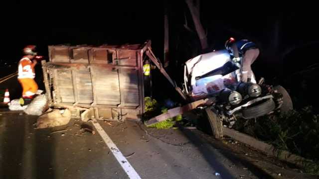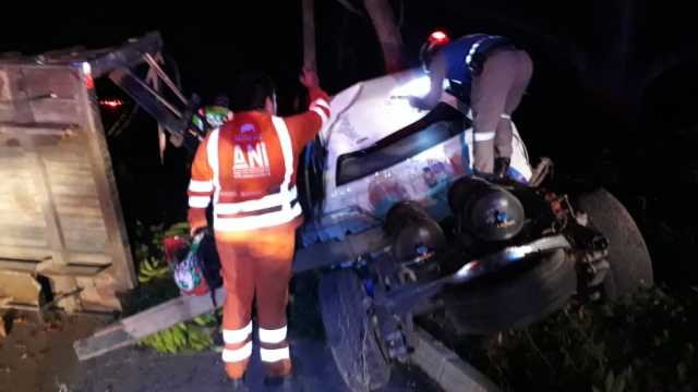 En la noche de este jueves, a las 7:00 p.m., Bomberos de Irra atendieron un accidente de tránsito en la vía Irra-Manizales. Un camión que transportaba plátanos y naranjas se chocó.