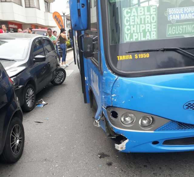 Este mediodía se presentó un choque en la Avenida Santander entre tres vehículos (una buseta y dos carros particulares). Dos personas resultaron lesionadas. Gilberto Gallego, quien iba en la buseta, fue trasladado a la Clínica Santillana. El otro herido no quiso ser traslado a un centro médico.