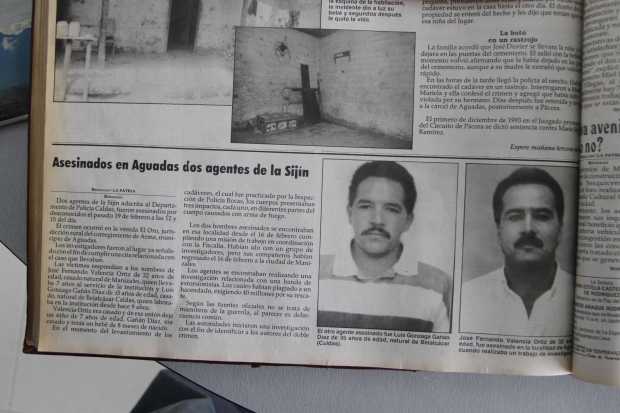 Los dos estaban adscritos a la Sijín y trabajaban en un caso de extorsión, de la cual era víctima un hacendado del Norte de Caldas.