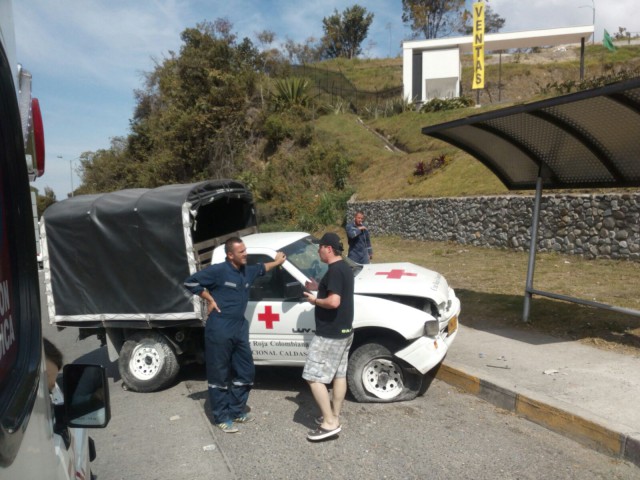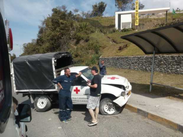 Por esquivar un motociclista que, al parecer, invadió el carril, el conductor de un vehículo de la Cruz Roja se accidentó cerca a Expoferias.