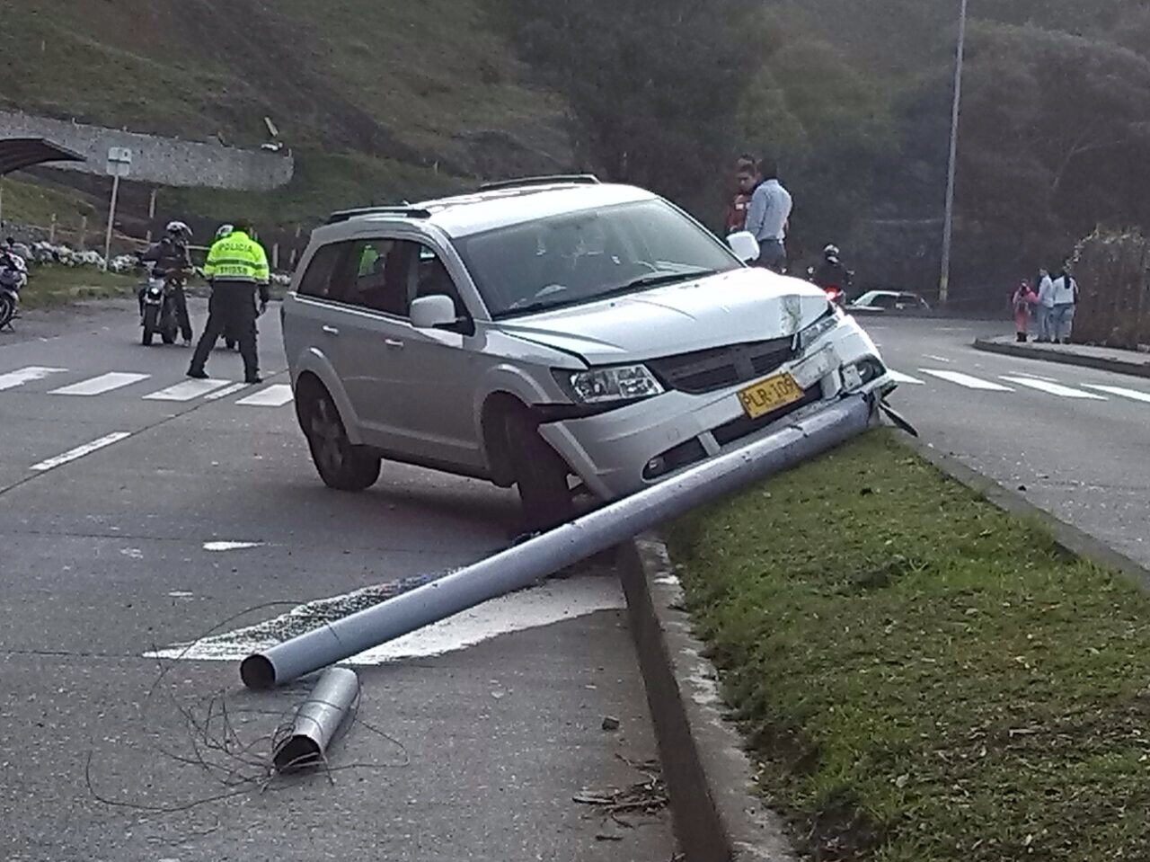 El conductor de una camioneta se subió al separador de la Avenida Alberto Mendoza entre el Bosque Popular el Prado y Expoferias, frente al vivero Los Cerezos, y tumbó un poste de alumbrado público.