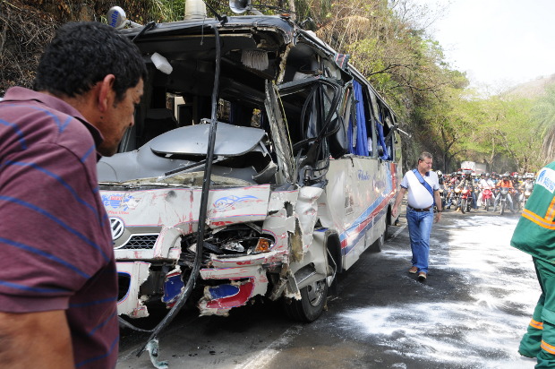 El hecho se dio a las 10:10 de la mañana entre una tractomula y la buseta. Conductor y pasajeros se detuvieron minutos antes a desayunar en un restaurante del sector. La Policía de Carreteras explicó que al tractocamión se le desprendió el contenedor, cuando intentaba sobrepasar, y esta cayó encima del otro automotor.