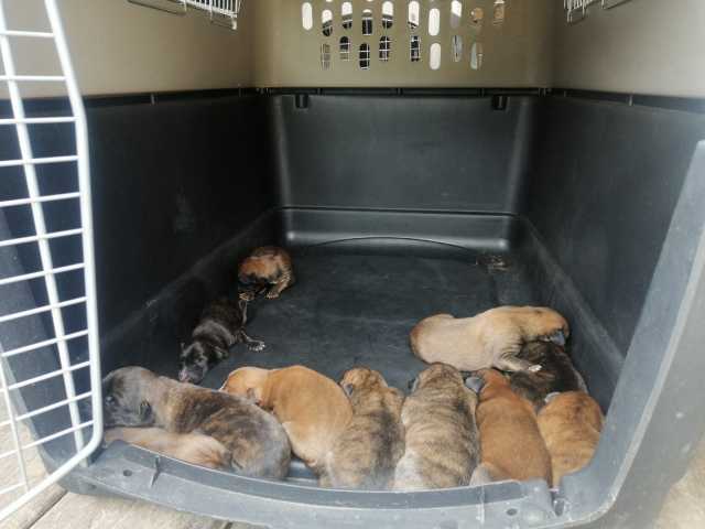 Manizales. Animales rescatados por uniformados del CAI La Terraza, de la Policía Metropolitana, en Camino del Medio (La Avanzada). La madre y sus 11 crías recién nacidas estaban en este sitio, abandonadas. Los llevaron para la Unidad de Protección Animal.