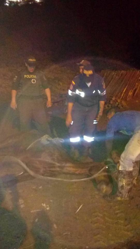 Bomberos Marmato apoyó anoche a la Policía en la extracción de un equino, al que abandonaron en aguas del sector conocido como El Relleno, de ese municipio. Al parecer, perdió su movilidad por una caída cuando cargaba elementos. El dueño lo abandonó, según la comunidad. El animal murió minutos después de ser rescatado.