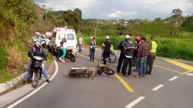 Dos motociclistas chocaron, ayer en la tarde, en el sector de la Y de la vía Chinchiná-Palestina, en la vereda Cartagena (Palestina).