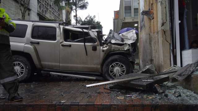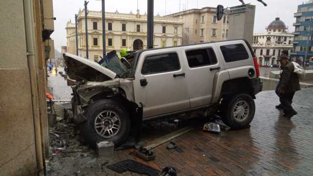 Dos choques en el Centro de Manizales: un vehículo colisionó contra la Catedral