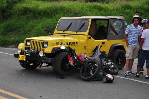 Anserma. En el sector de la variante, en la vía que comunica con Riosucio, colisionaron una motocicleta, que según testigos se movilizaba a alta velocidad, y un campero que salía por la calle 18. Dos jóvenes que se desplazaban en la moto fueron remitidas al hospital San Vicente de Paúl con heridas en sus extremidades.