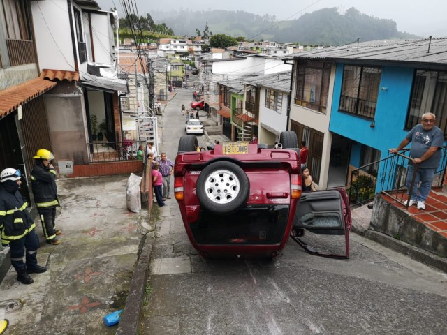 Esta tarde de martes se volcó un campero en una calle del barrio La Enea.