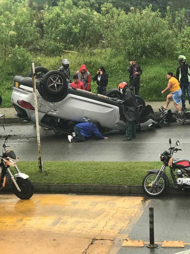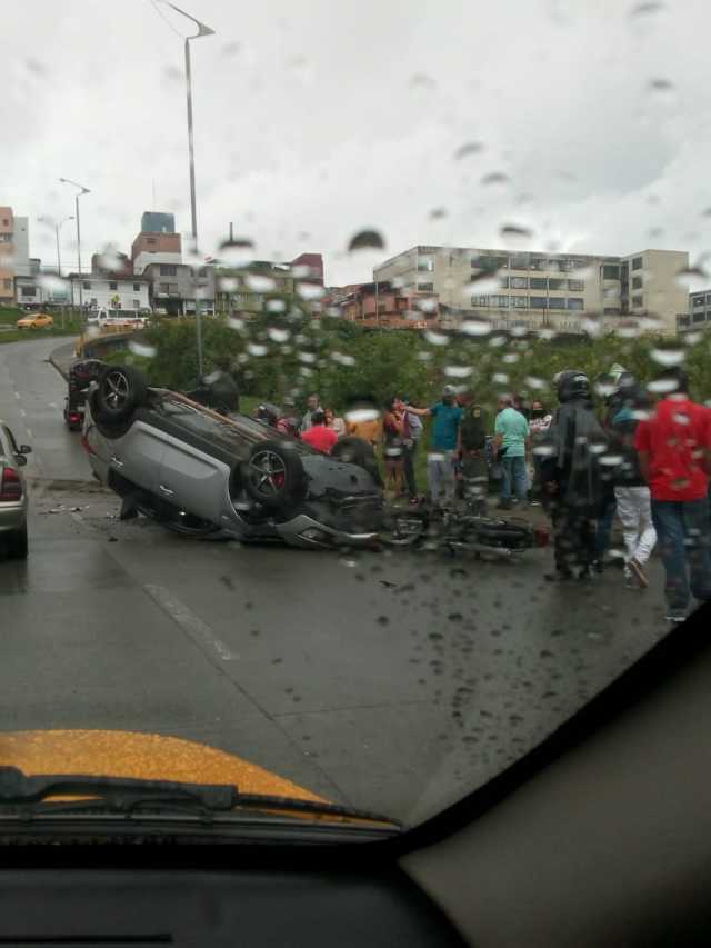 Dos lesionados en volcamiento de un carro en la Avenida Colón