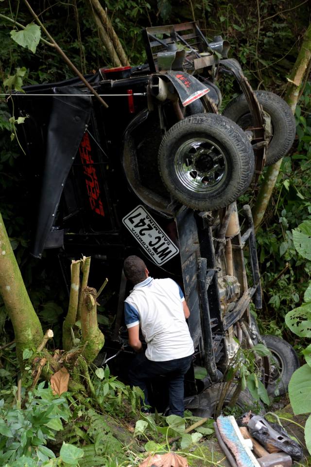 Andrés Felipe Cruz, de 27 años, y Óscar Aguirre, de 63 años, resultaron lesionados en este accidente ocurrido ayer a cinco kiómetros del casco urbano de Salamina, en el sector La Mata de Guadua, vía Salamina-Manizales. Chocaron un carro particular y un campero. Este último terminó clavado en una cuneta.