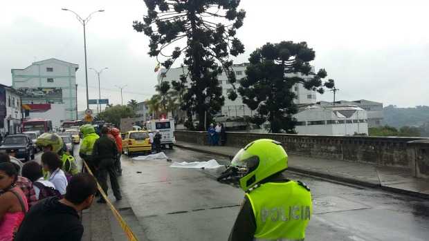Un accidente se acaba de presentar unos metros antes del Hotel Carretero en Manizales. El hecho dejó dos víctimas mortales. Apenas realizan la inspección técnica de los cuerpos y se establece qué ocurrió. Fue un incidente entre una moto y un carro.