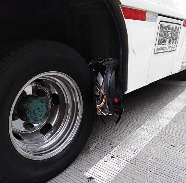 En tragedia pudo terminar un accidente de tránsito ayer en la glorieta de la Universidad Autónoma. Una mujer y su hijo, menor de edad, iban en moto. Chocaron contra un bus. El casco del adolescente quedó entre las llantas y el parrillero momentáneamente atrapado.