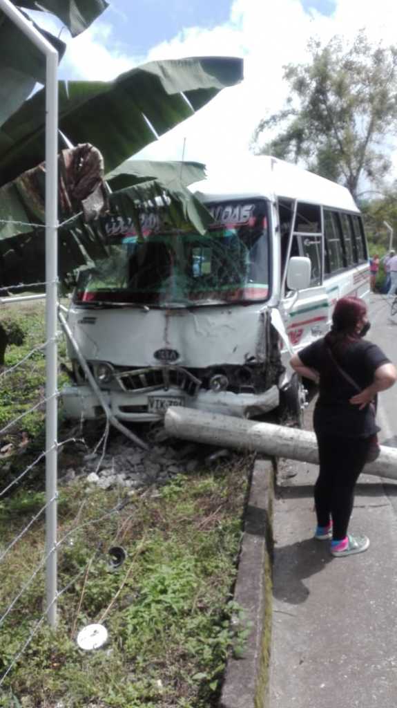 Jueves. Un vehículo de la empresa Éxodo rodó a las 9:45 de la mañana en la Troncal de Occidente, sector Barrio Santa María. El conductor tuvo diferentes politraumatismos, valorado en el lugar por Bomberos y Defensa Civil. Lo llevaron al hospital.