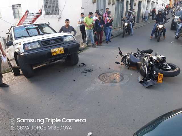 Martes. A las 5:50 de la tarde, en la carrera 5 con calle 9, una motocicleta colisionó contra un vehículo. El primero registró politraumatismos en diferentes partes del cuerpo. Atendió Bomberos.