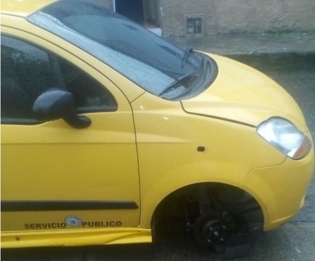 Los dejaron en rines. Esta frase aplica para una familia de Villamaría, que se llevó tremenda sorpresa el pasado jueves, cuando se levantó y encontró su taxi, en el andén, sin las cuatro llantas. Los intrépidos delincuentes dejaron, debajo del vehículo, el gato sobre el que lo apoyaron para cometer su fechoría.