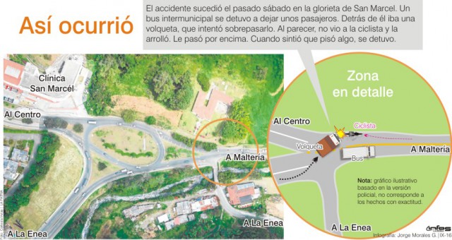 El de la pacoreña fue el accidente número 38 de ciclistas en Manizales este año. El saldo hasta ayer era de 37 lesionados y dos muertos. Las autoridades de tránsito han aplicado en el 2016 13 comparendos a los conductores de estos vehículos, especialmente por no portar los elementos de seguridad, pasarse los semáforos en rojo e ir en contravía.
