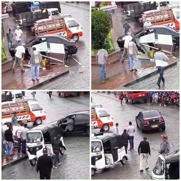 El sábado, en Pácora, durante un aguacero, un carro se fue encima de Ezediel López, reconocido vendedor de papas fritas del parque principal. El automotor terminó contra un muro. Lo más preocupante es que el conductor, un contador de la población, retrocedió su vehículo y huyó del lugar.