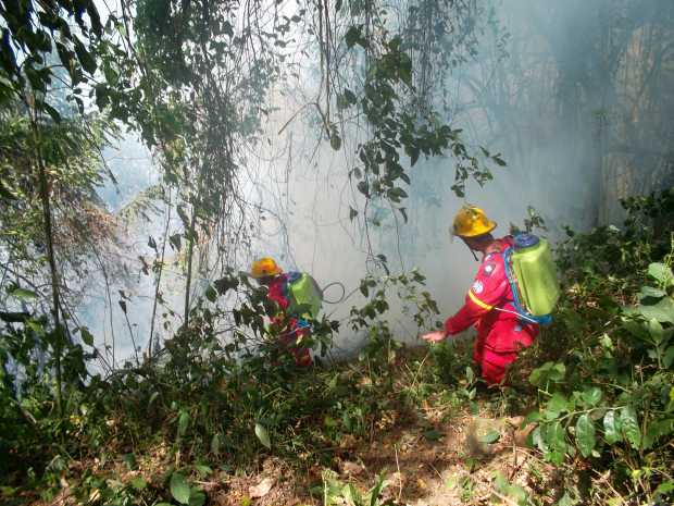 A las 6:30 les informaron de otros dos incendios: uno en la vereda La Selva y otro en El Peligro. Este lo controlaron sus colegas de Aranzazu y la Defensa Civil. Cuando llegaron a La Selva, los trabajadores de la finca ya habían apagado las llamas en un cañaduzal.