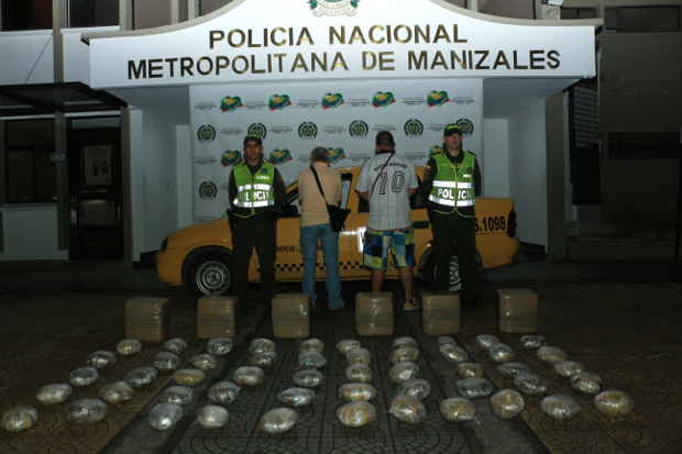 El caso ocurrió ayer en la noche cuando un cuadrante de la Policía de Manizales interceptó a un taxi en la carrera 4 con calle 48F que movilizaba varios paquetes de estupefaciente. Sin embargo, a los dos capturados en el operativo les seguían el rastro.