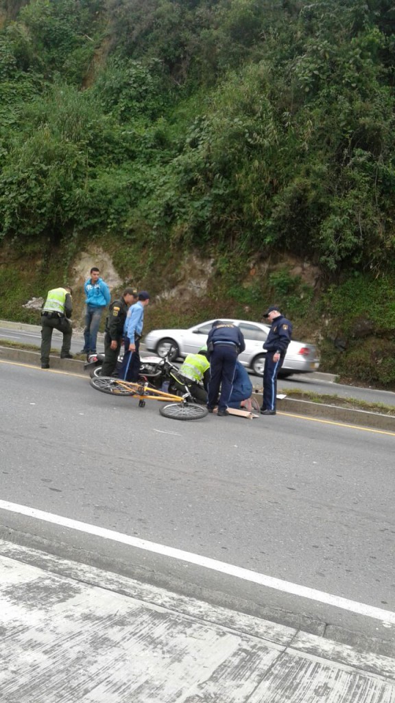 El primer caso se dio a las 8:00 de la mañana. Andrés Felipe Quintero Ramírez, de 18 años, descendía en bicicleta por la vía Manizales-La Manuela. Frente al establecimiento Sabadel perdió el control del vehículo, chocó contra el separador y cayó. Un amigo que iba con él lo auxilió y lo llevó al hospital, con ayuda de un particular.