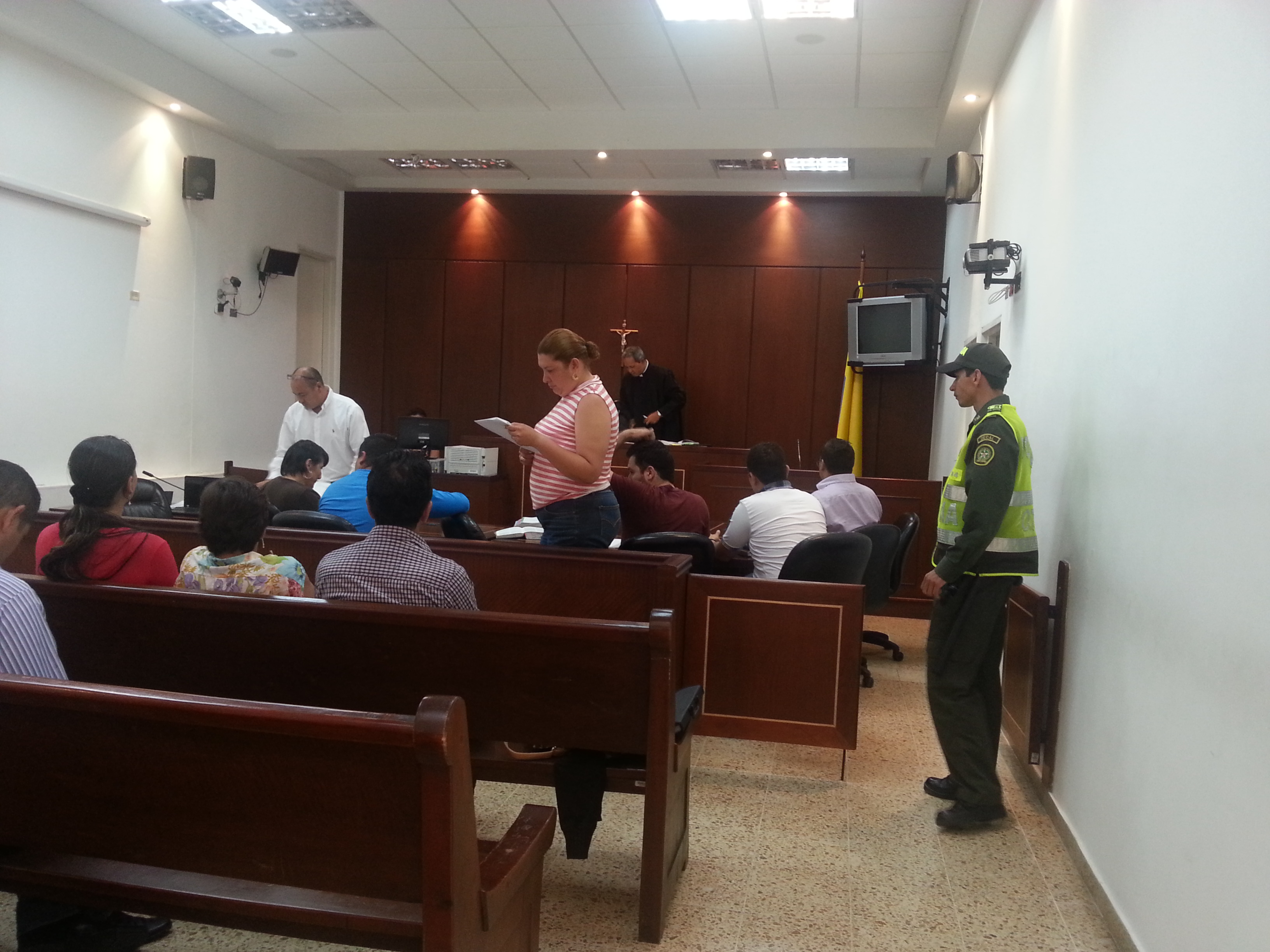 En la sala de audiencias donde presentaron ante un juez a los tres policiales capturados estuvieron presentes familiares de los imputados y agentes del Gaula.