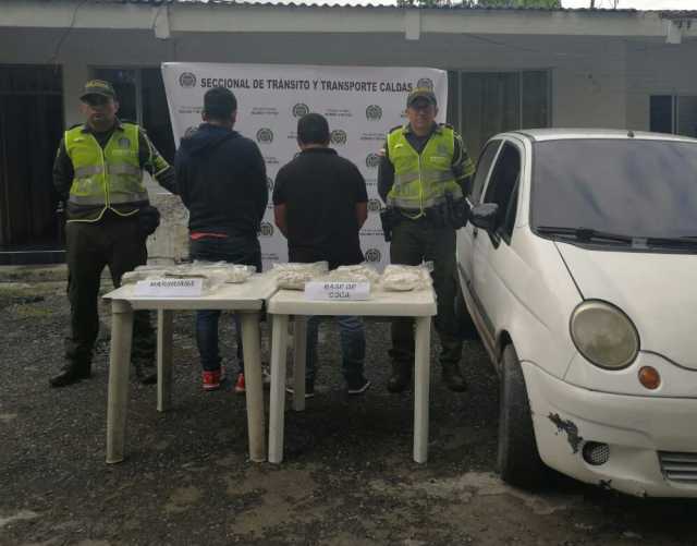 Caldas. La Policía de Carreteras reportó el fin de semana que en la vía Manizales-Chinchiná detuvo a un hombre, natural de Cali, quien iba en un particular. En la parte trasera del automotor le hallaron 36 paquetes con 18 kilos de marihuana. En la vía Cauya-La Pintada cayeron dos hombres, ocupantes de un carro. Llevaban encaletados 7 kilos de base de coca y 2 kilos de marihuana.