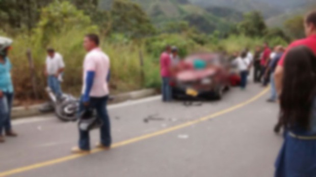 Un accidente entre una motocicleta y un automóvil que se registró el pasado lunes festivo en zona rural de Pensilvania dejó como resultado a dos personas heridas. Una de gravedad, a dos kilómetros del corregimiento de Bolivia, en el sector conocido como La Quiebra.
