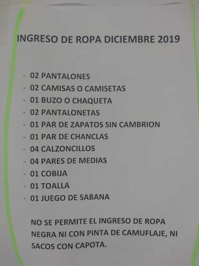 Agregó que se les daría la posibilidad a los denunciantes de entrar una parte de la ropa y que la otra la envíen por encomienda. O se analiza si se asigna otro día para el ingreso del vestuario que no se pudo entrar ayer.