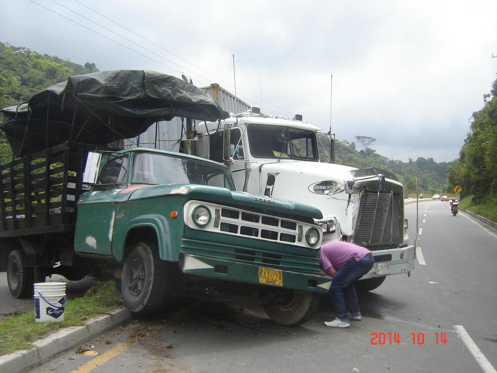 El Cuerpo Oficial de Bomberos atiende una colisión entre dos camiones frente al Crematorio Jardines de la Esperanza, por la Panamericana, de Manizales.