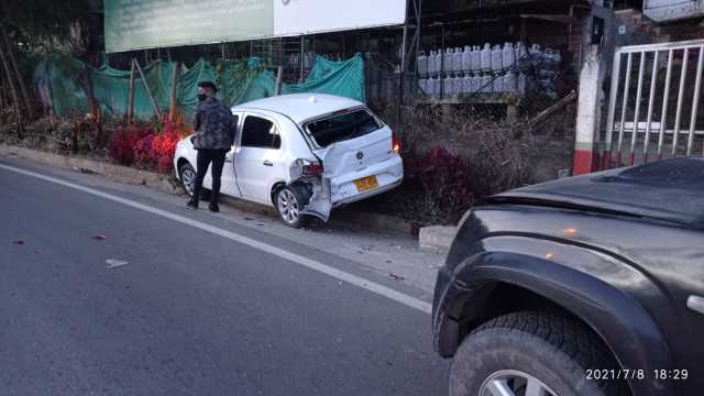 A las 6:00 de la tarde de ayer se registró el choque de dos carros en la Troncal de Occidente, por el sector del Ecohotel El Pensil, en Anserma.