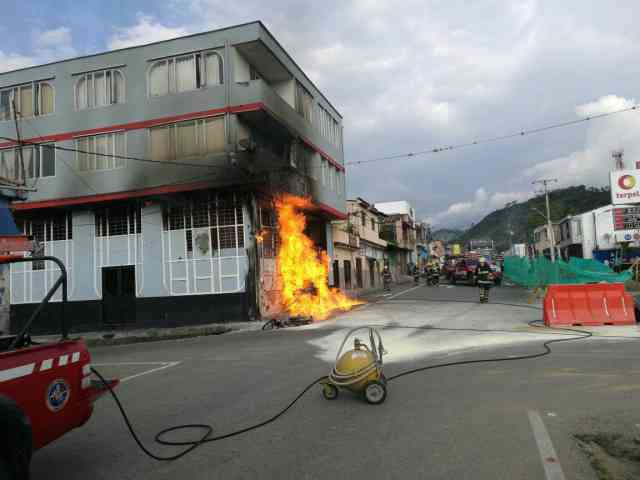 Las llamas consumieron parte de un local donde funcionaba un taller de cambio de aceite, en Chinchiná.Dos motos y cinco vehículos fueron afectados por las llamas, al parecer originadas por a la ruptura accidental de un conducto de gas.