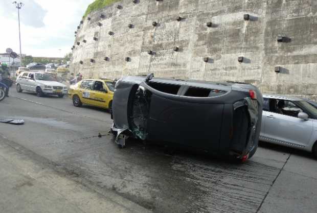 Los organismos de socorro de Manizales atendieron esta tarde, a las 4:30 de la tarde, el volcamiento de un vehículo en el carril de bajada de la Avenida Alberto Mendoza, entre el Batallón Ayacucho y Expoferias.