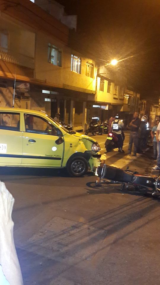 El choque fue con un taxi. Atendió Bomberos de Chinchiná. El conductor de la moto tuvo heridas leves.