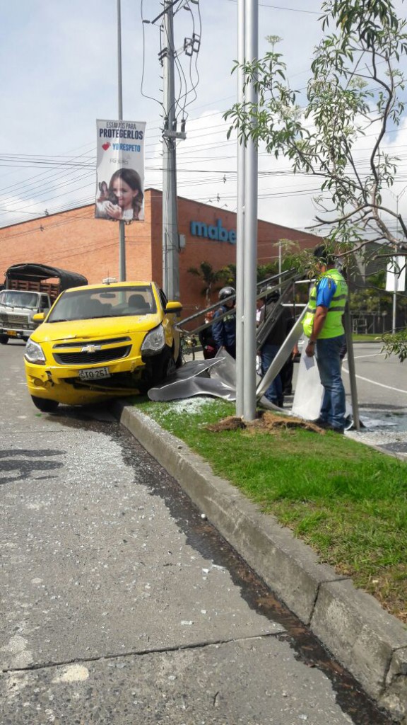 Manizales. Ayer, en la mañana, se registró este accidente en el sector de Mabe. El conductor del taxi perdió el control del vehículo y terminó contra una valla publicitaria. No hubo lesionados. La emergencia la atendió la Unidad de Gestión del Riesgo.