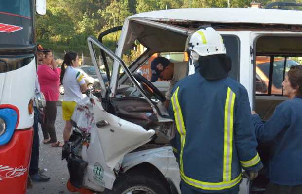Los curiosos que se agolparon ayer en el sitio del accidente resaltaron la acción de la mujer, que además de eso quedó atrapada dentro de la cabina por unos minutos. Bomberos, Cruz Roja y Defensa Civil, organismos de socorro de la Unidad de Gestión del Riesgo, la rescataron. Otros tres menores y un adulto quedaron con heridas leves.