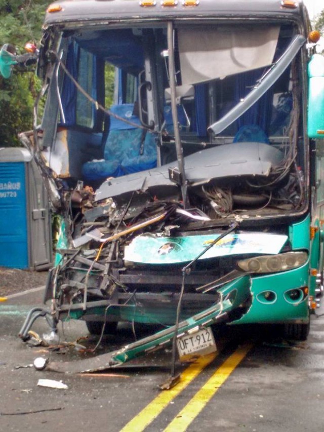 Uno de los cuatro buses del colegio, de placas UFT 912, chocó por detrás a un camión, de placas VLJ 882. Las primeras hipótesis de las autoridades indican que el camión iba a pasar un reductor de velocidad y frenó. En ese momento, el bus, que al parecer iba rápido, le dio por detrás.