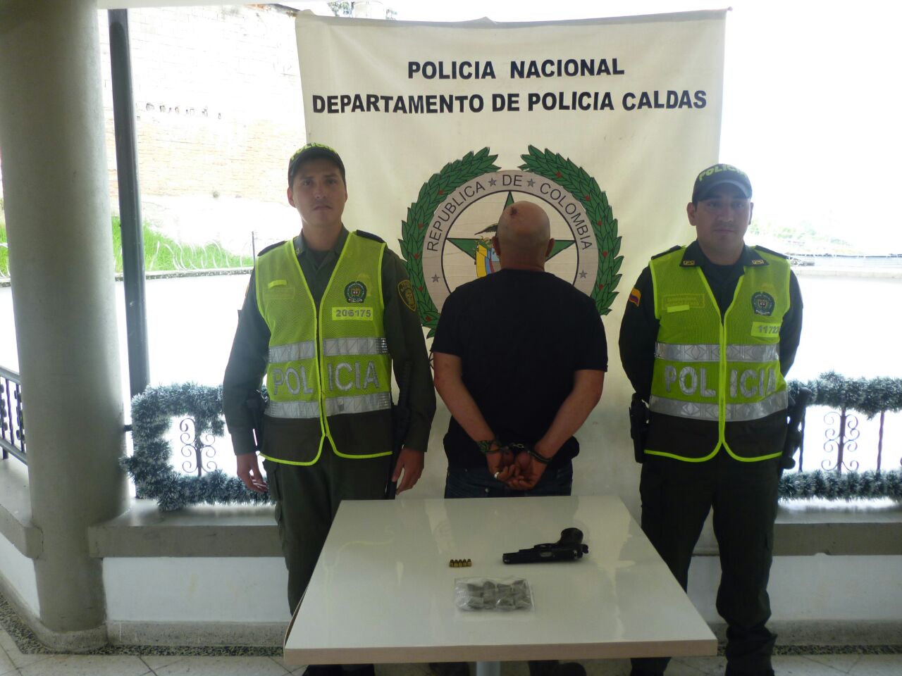 Según informó la Policía, al hombre lo capturaron cuando lo vieron sentando y notaron en él una actitud sospechosa, por lo que procedieron a requisarlo, y encontraron en su poder una pistola calibre 4.65 sin marca y sin número, con un proveedor y cinco cartuchos, sin permiso para su porte, además de 38 gramos de marihuana en un bolsillo del pantalón.