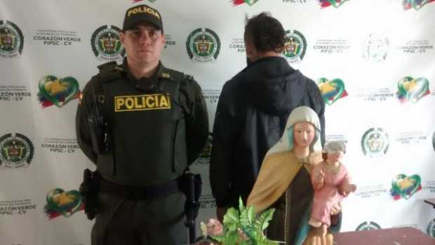 El teniente Diego Alejandro Rendón, comandante (e) de la Policía de Anserma sostuvo que al sospechoso, de 27 años, lo detuvieron luego de que asaltó la Gruta. En su poder tenía los elementos que arrancó. Mediante un allanamiento voluntario devolvió cruces del cementerio e imágenes religiosas que hurtó y tenía en su vivienda.