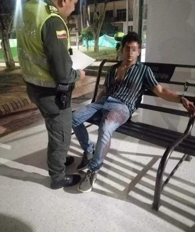 Con su ropa y manos aún manchadas de sangre caminó desde la glorieta del Caballo de Bolívar, por toda la carrera 27, hasta el Parque de los Niños, donde fue capturado por la Policía, tras ser señalado como la persona que acaba de cometer el crimen.