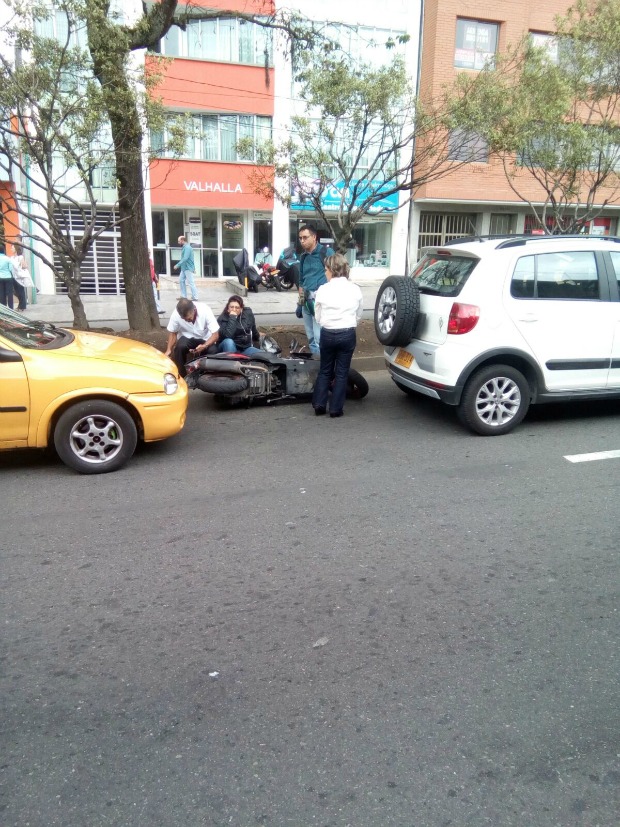 Una moto ocasionó choque con un vehículo particular y un taxi en la Avenida Santander con calle 46, frente al Ara.