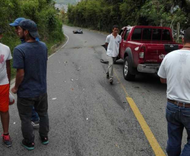 Juan Carlos Cardona murió hoy en el hospital San Antonio de Villamaría, luego de chocarse en su moto contra una camioneta de placas BWQ382. El hecho se registró en la vía hacia el barrio Turín. El motociclista era trabajador de la Súper de Alimentos y tenía 23 años.