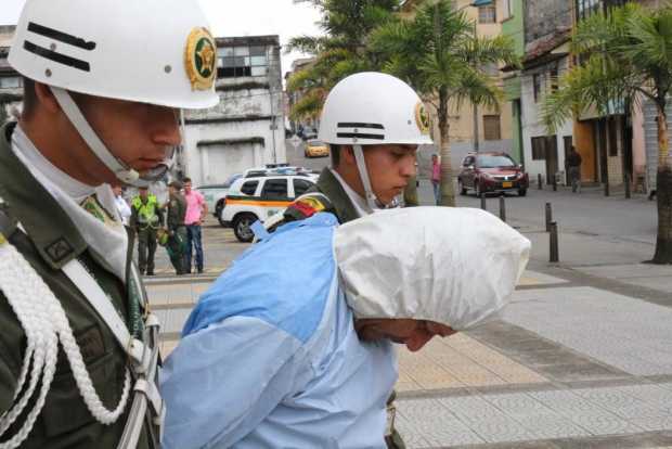 Luego de la captura al hombre lo cubrieron con una bata, ya que en su cuerpo tenía evidencias de la brutal agresión a la mujer.