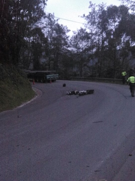 Una motocicleta se estrelló con una tractomula en el la vía que conduce a Letras, por el sector de Sabinas.