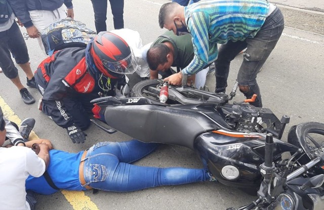 A la mujer la valoraron en el sitio y la trasladaron al hospital San Vicente de Paúl. Sufrió varios golpes.