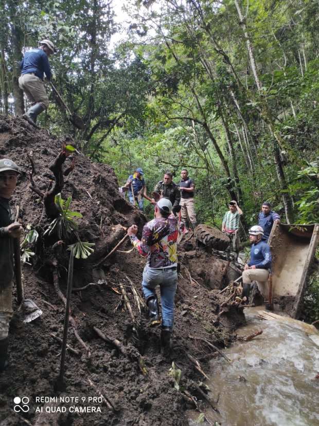 Un deslizamiento tapó a Alexánder Moreno, el conductor, y a la máquina, y los lanzó a una quebrada. Las autoridades buscan en este momento al operario.