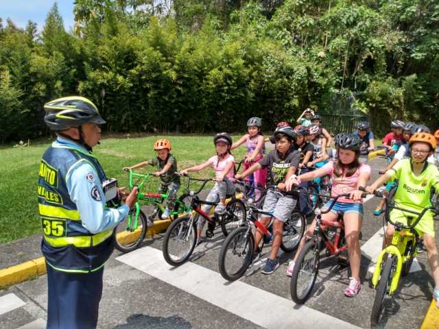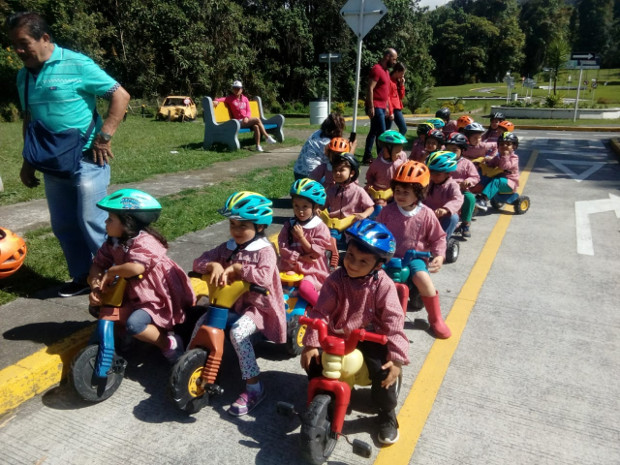 Ayer el turno fue para menores del Liceo Creativo de Villamaría, quienes aprendieron cómo comportarse en las vías como actores viales y la manera de utilizar los elementos de seguridad y protección al montar en la bicicleta.